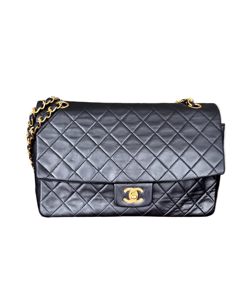 Chanel Black Vintage Single Flap Leather Bag 27 size