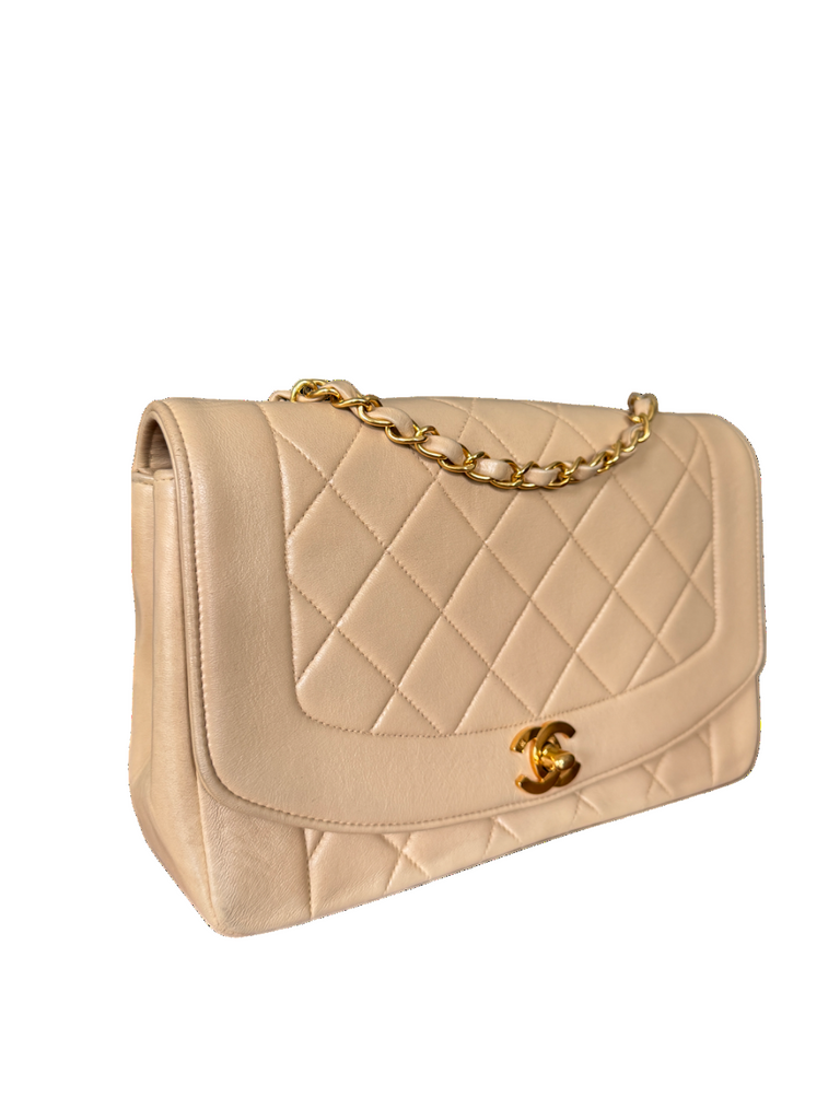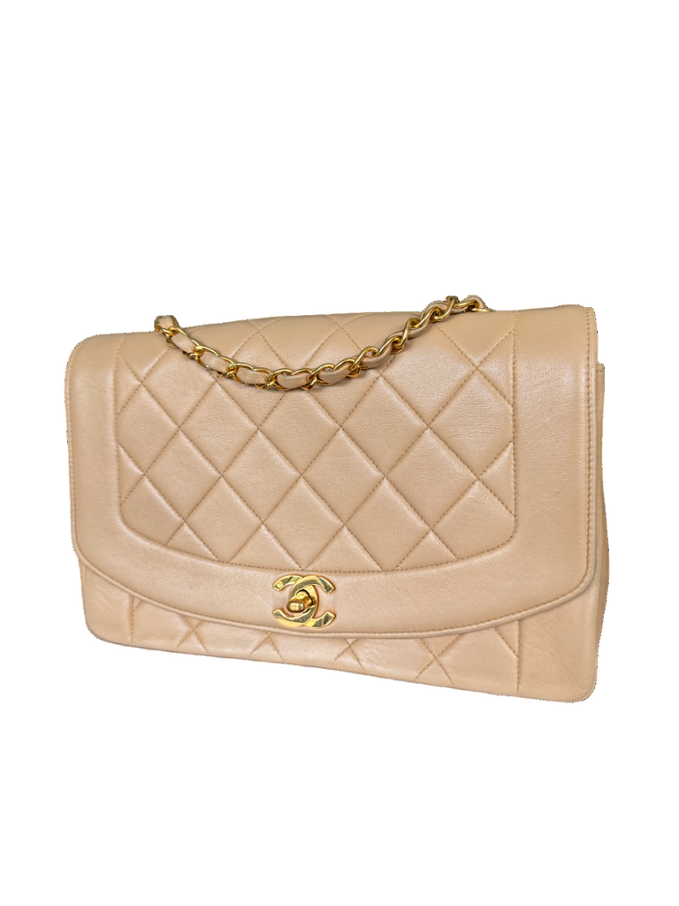Chanel Vintage medium Diana flap bag – beige lambskin year 1986