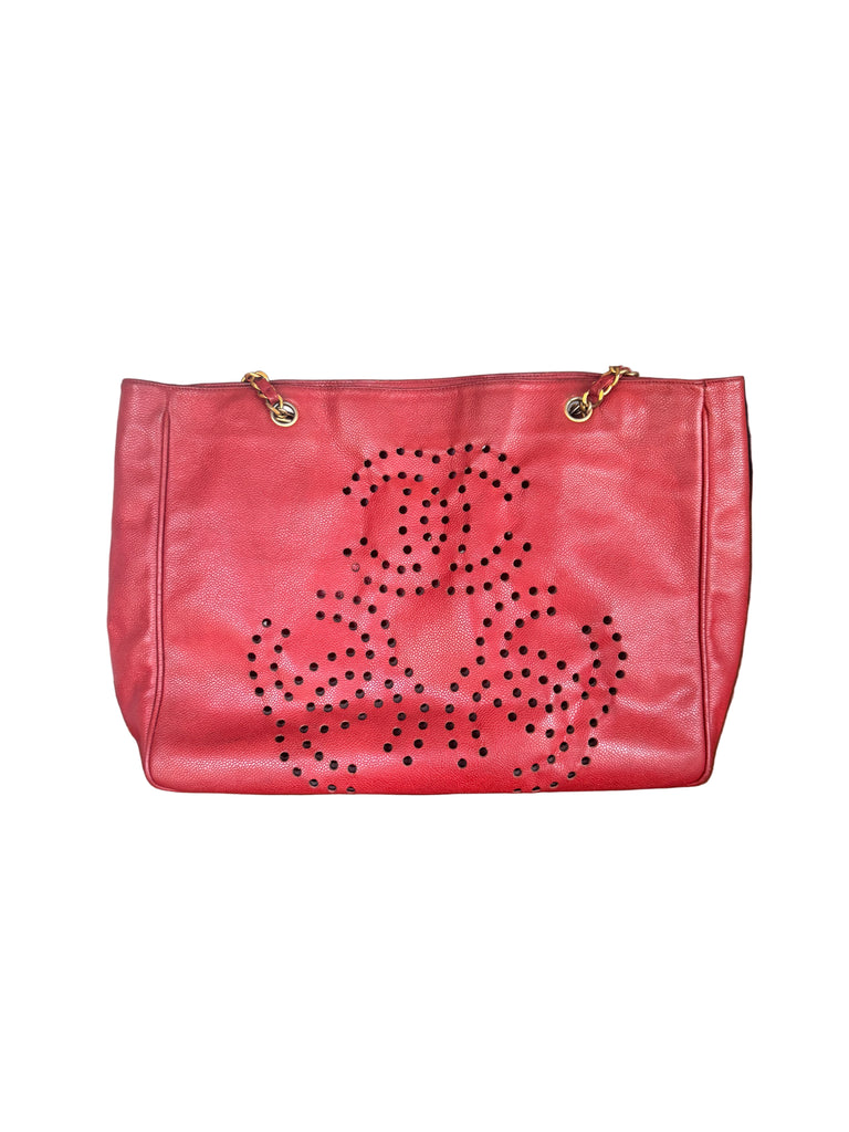 Vintage Chanel Red Caviar Leather Tote Bag with Chain Handles – Series 3 (1994–1996)