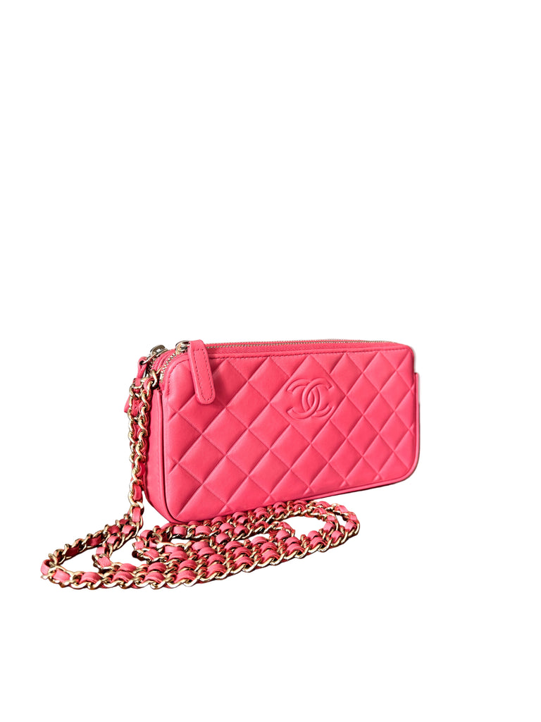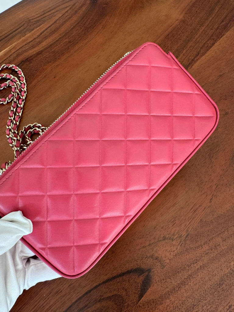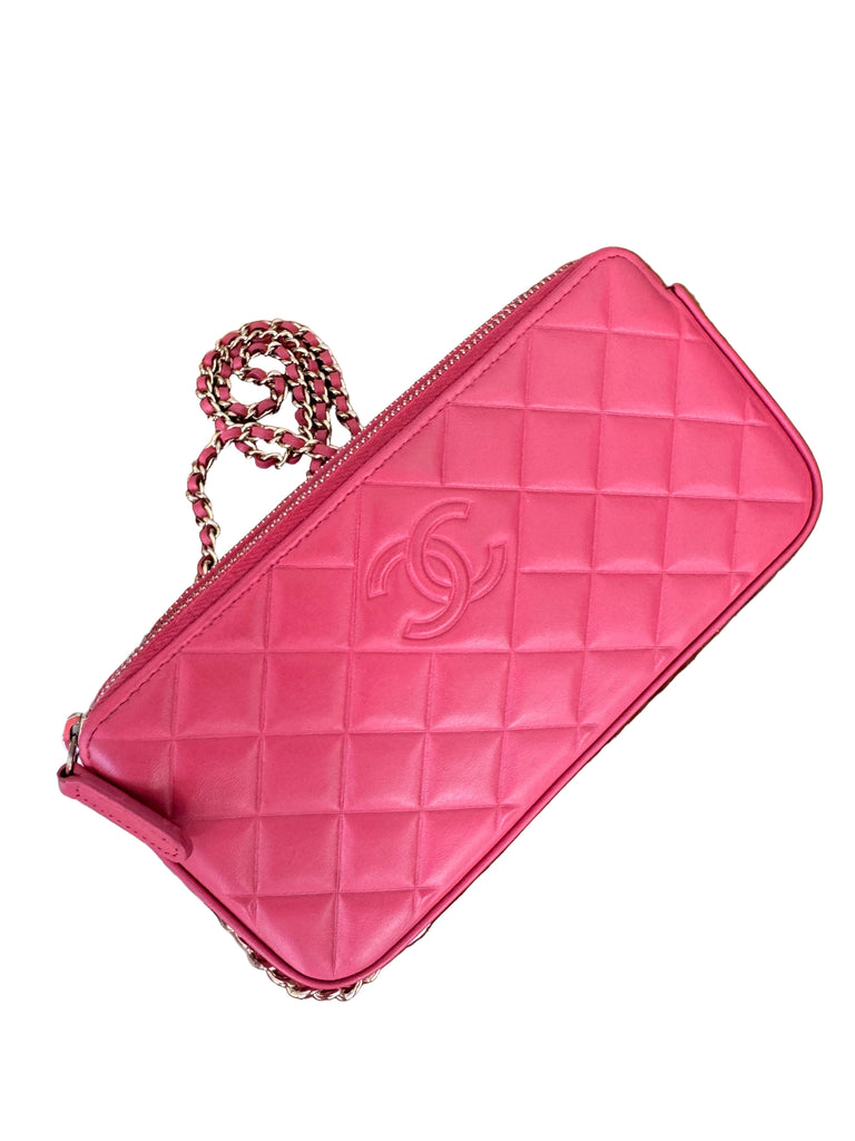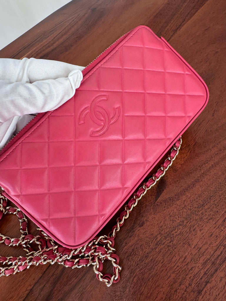 Chanel Double Zipper Chain Wallet – Mini Matelassé Lambskin Bag in Pink