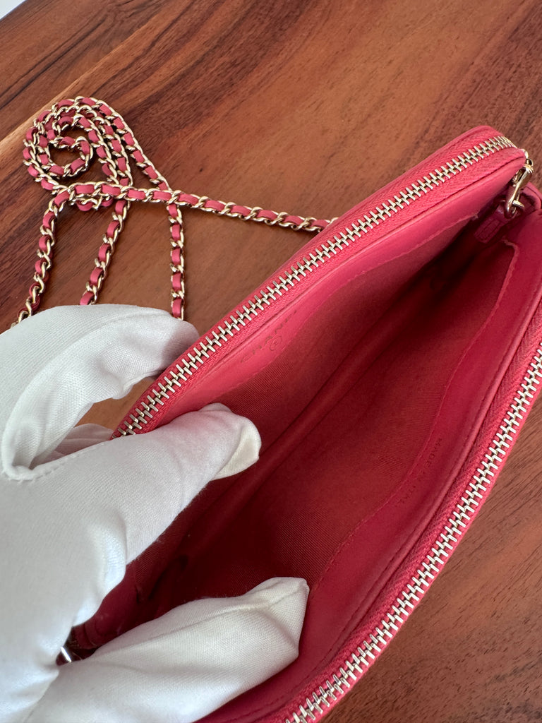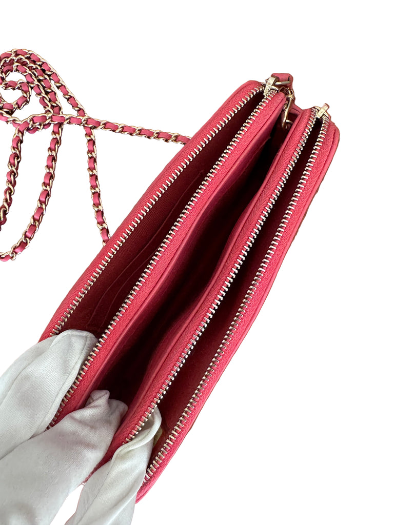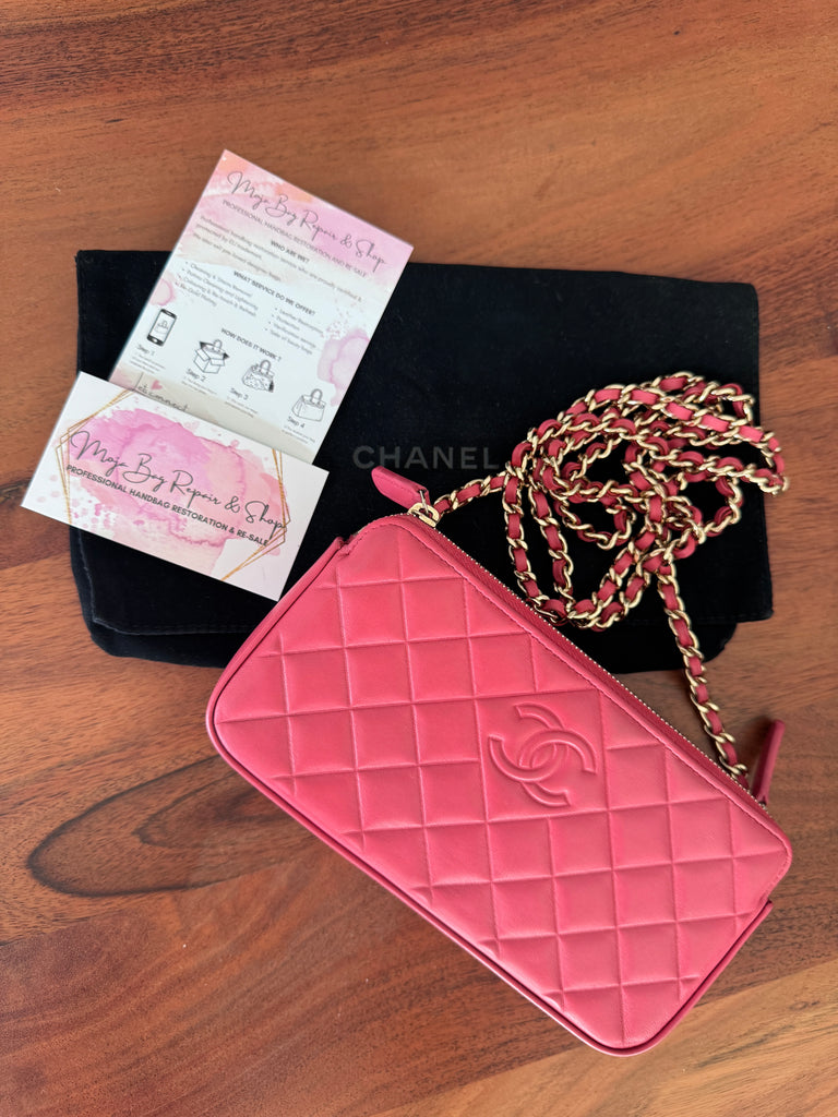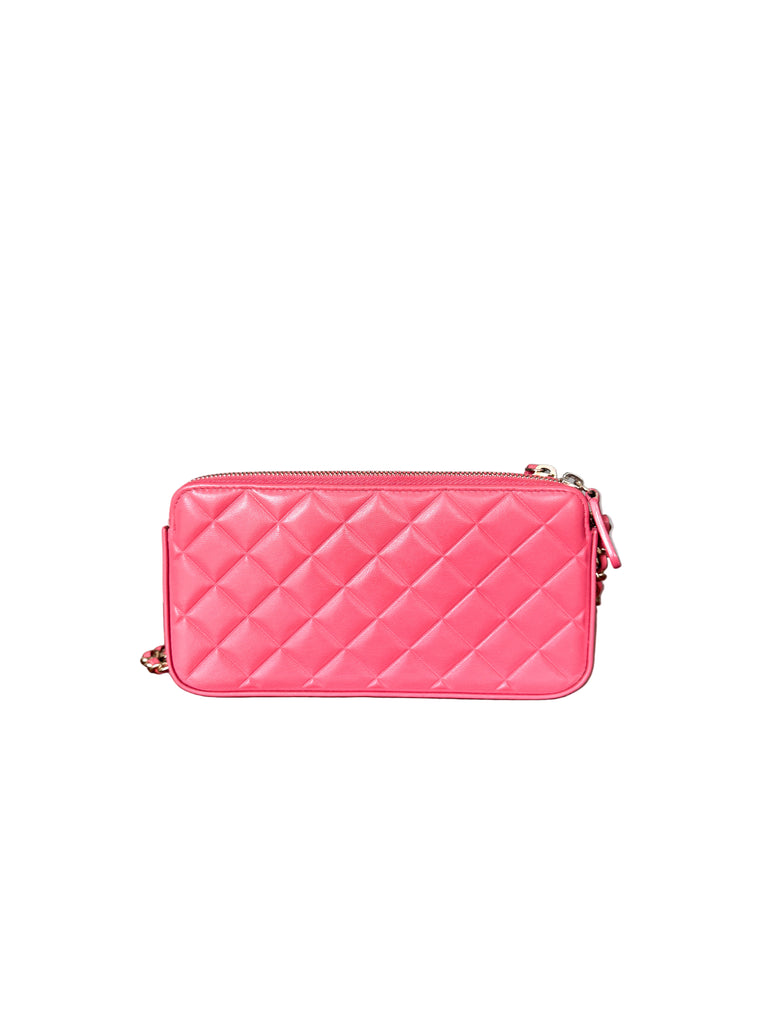 Chanel Double Zipper Chain Wallet – Mini Matelassé Lambskin Bag in Pink