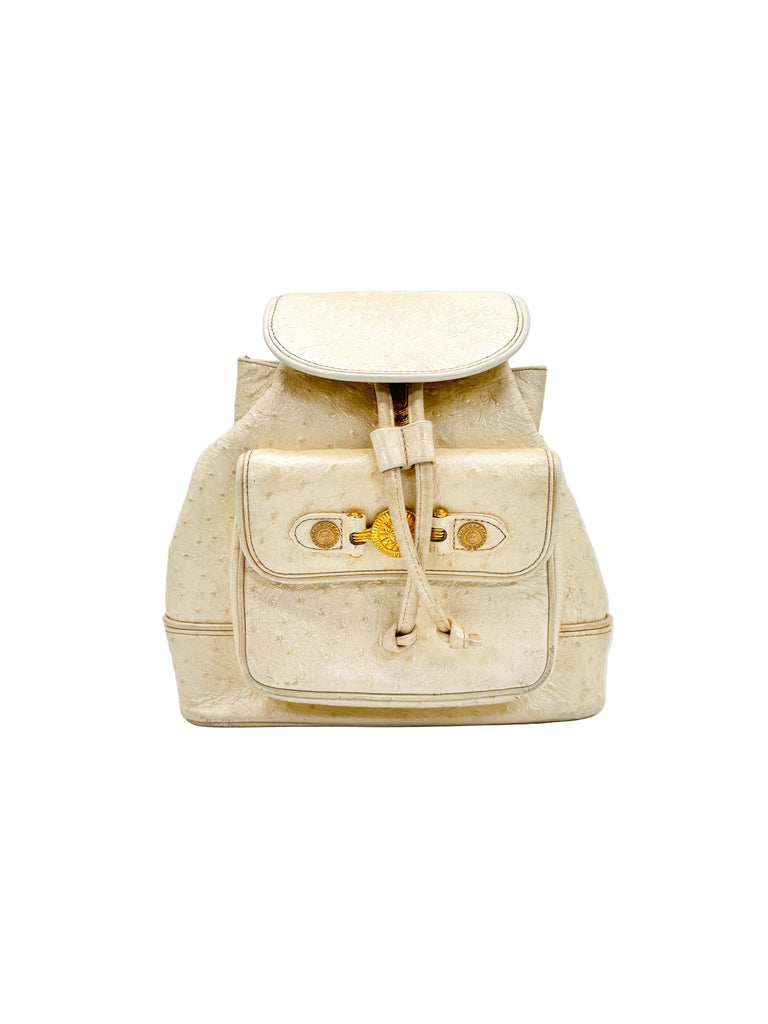 Vintage 1990s Gianni Versace Beige Embossed Leather Backpack with Gold Hardware
