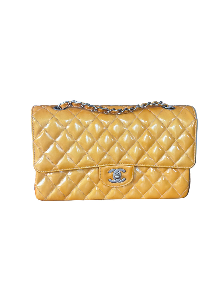 Vintage Chanel Classic Flap Bag Medium – Yellow Patent Leather with Matte Silver Hardware
