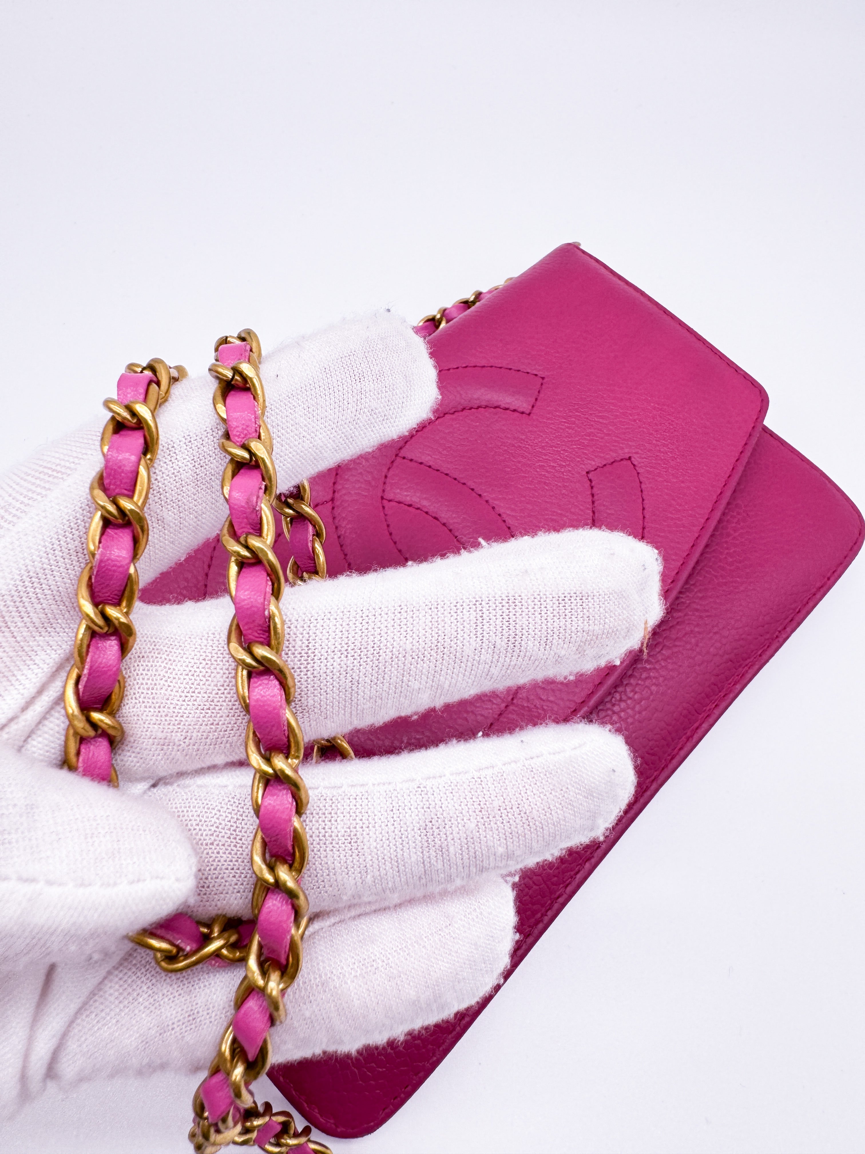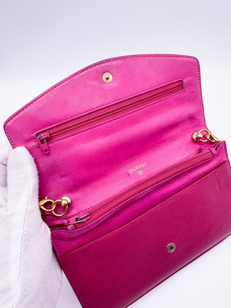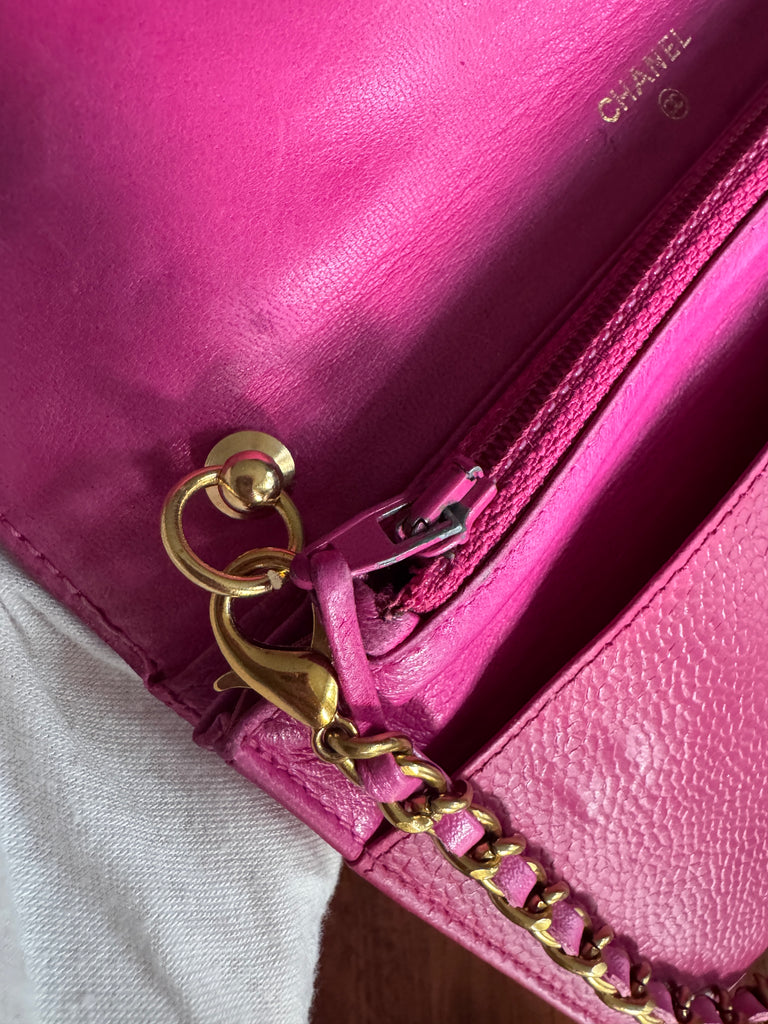 Authentic Chanel Vintage Wallet on Chain (WOC) – Pink Caviar Leather, Series 4 (1996–1997)