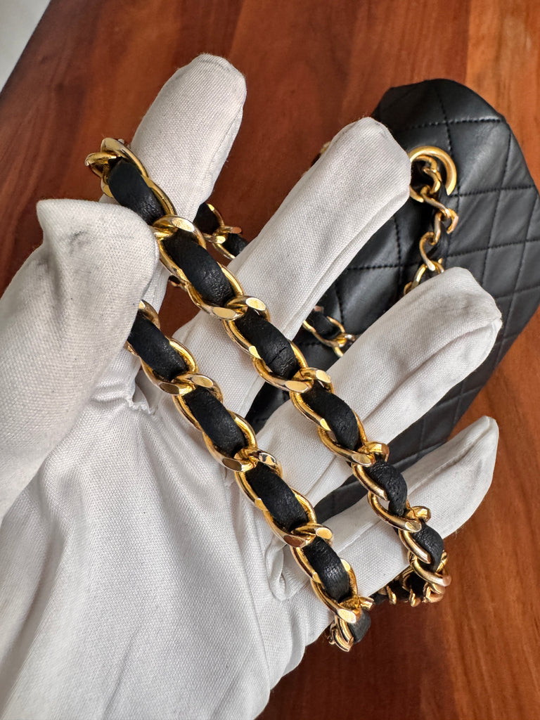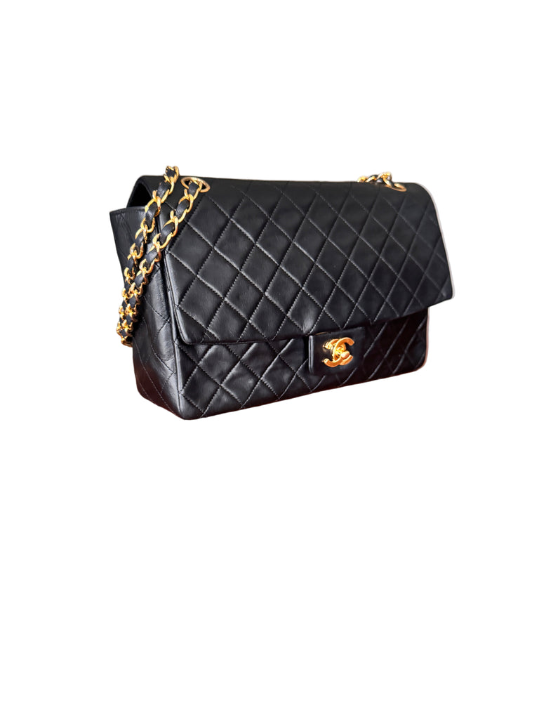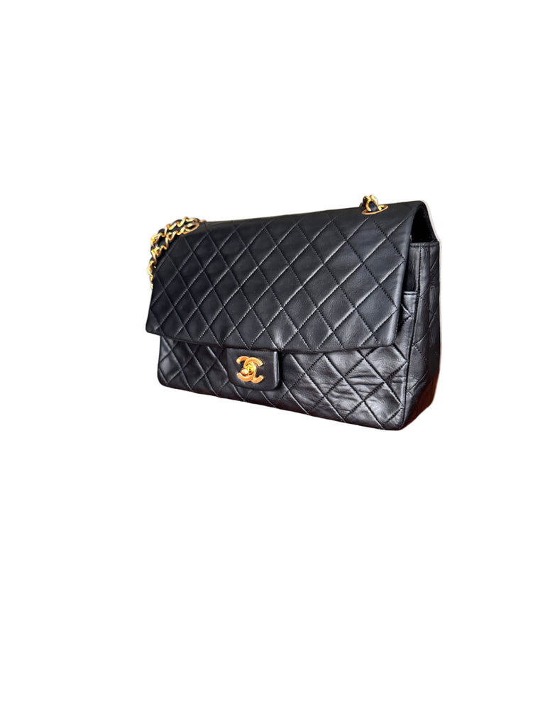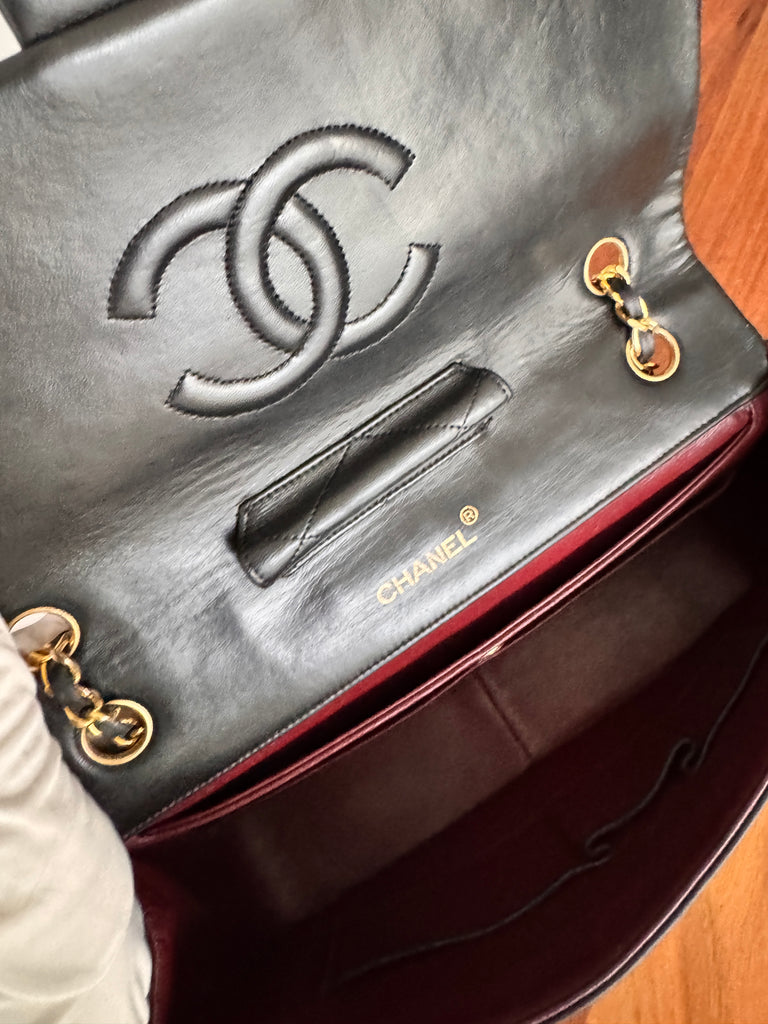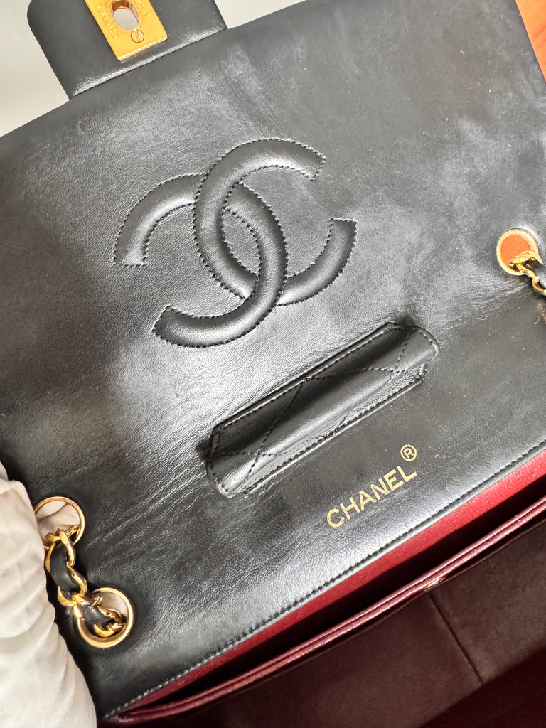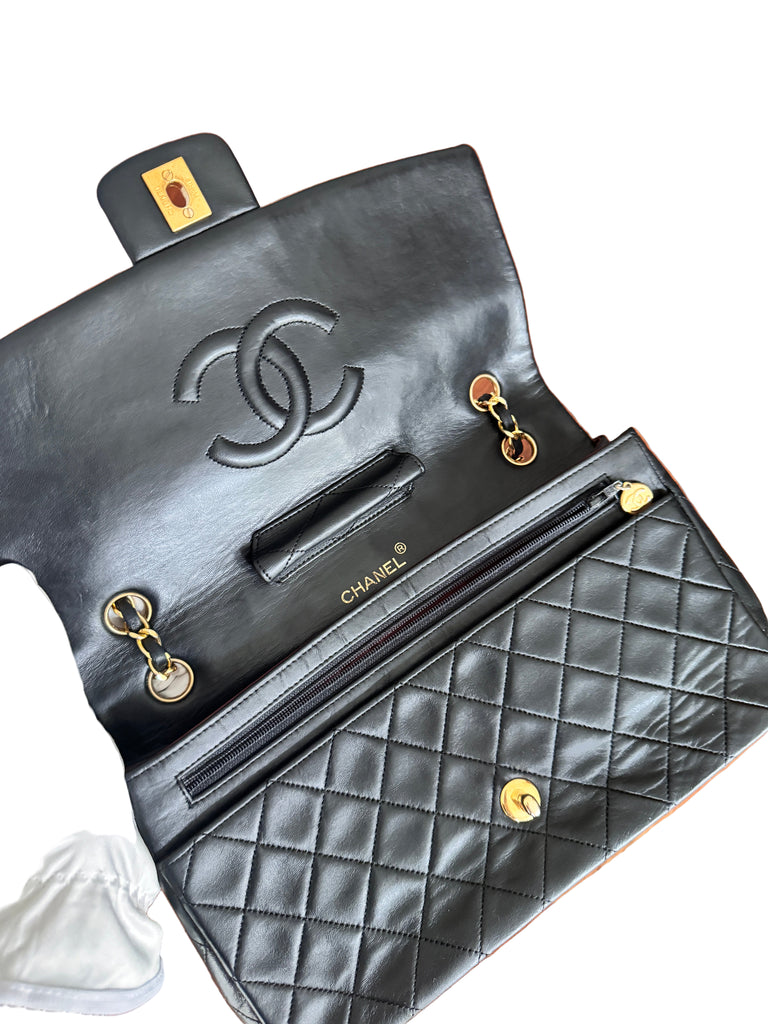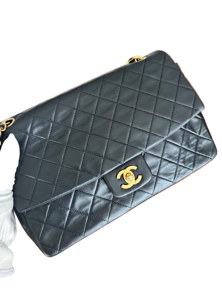 Chanel Black Vintage Single Flap Leather Bag 27 size